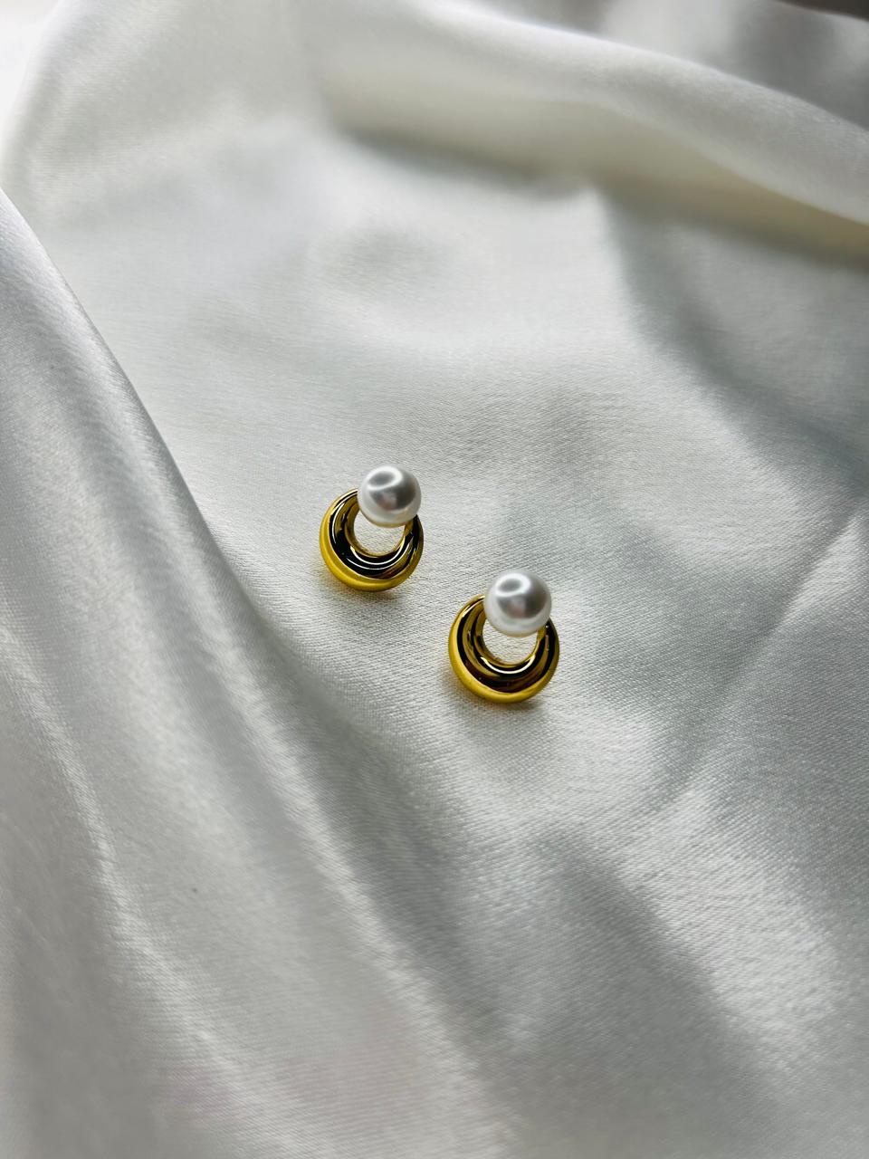 Add a timeless touch to your style with our Elegance Pearl Loop Studs. Featuring lustrous pearls gracefully set within a polished gold loop, these earrings blend classic charm with modern sophistication.