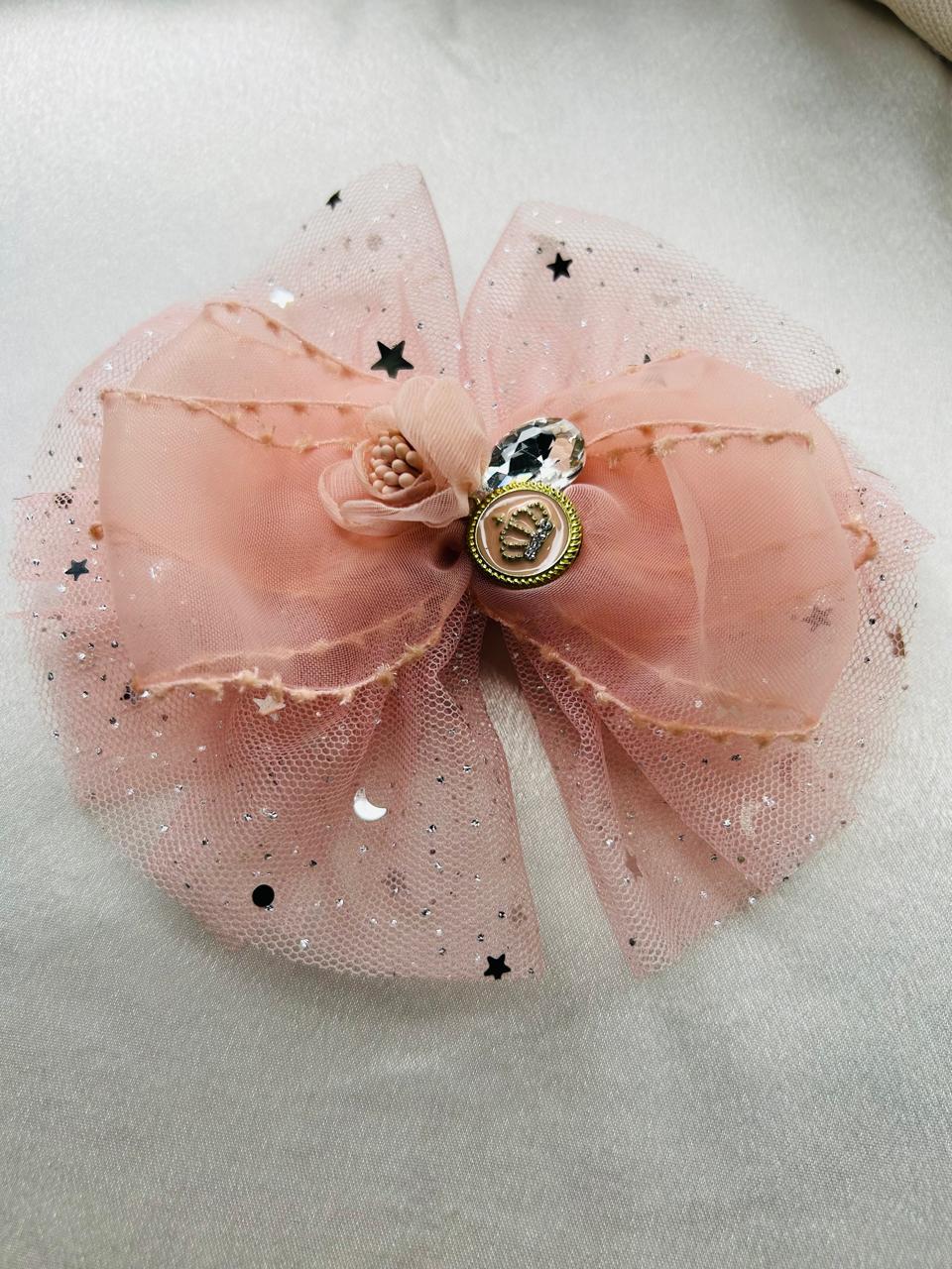Made with soft pink layers, sparkling stars, and a cute flower detail, this bow brooch brings fairy-tale magic to every outfit. Perfect for girls who love pink, glitter, and princess vibes!